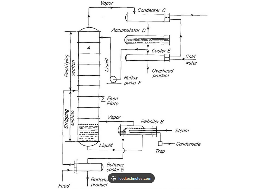 Alcohol (excess) gas enters from the bottom; Azeotropic with water from the top;
