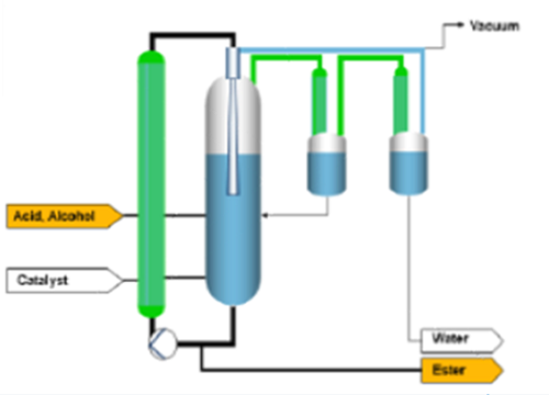 Acid enters from the top of the bed;Continuous ester discharge from Column kettle;